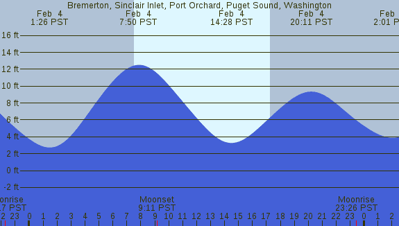 Tidal Heights at Bremerton, Sinclair Inlet, Port Orchard, Puget Sound, Washington