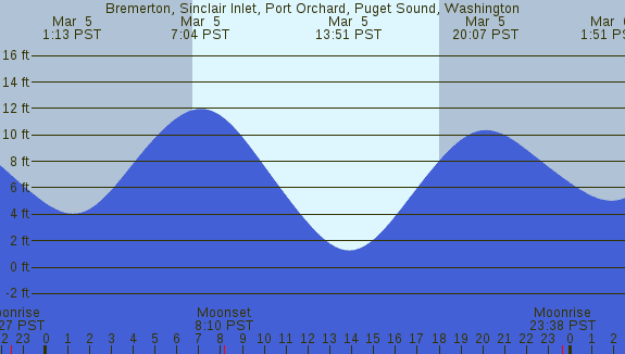 Tidal Heights at Bremerton, Sinclair Inlet, Port Orchard, Puget Sound, Washington