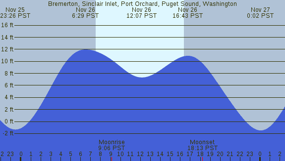 Tidal Heights at Bremerton, Sinclair Inlet, Port Orchard, Puget Sound, Washington