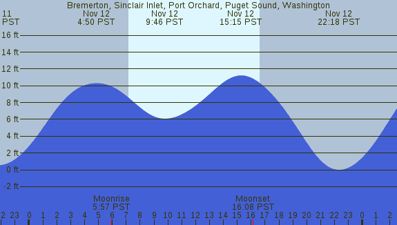 Tidal Heights at Bremerton, Sinclair Inlet, Port Orchard, Puget Sound, Washington