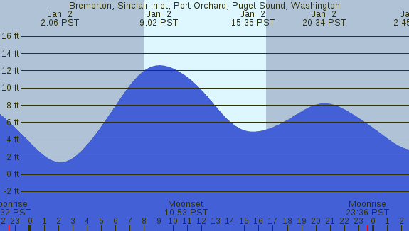 Tidal Heights at Bremerton, Sinclair Inlet, Port Orchard, Puget Sound, Washington