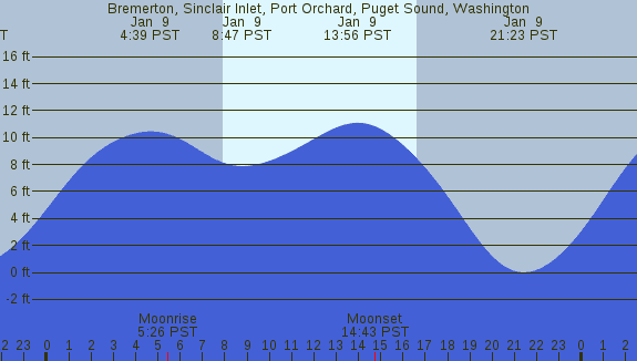 Tidal Heights at Bremerton, Sinclair Inlet, Port Orchard, Puget Sound, Washington