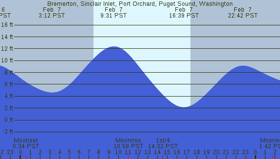 Tidal Heights at Bremerton, Sinclair Inlet, Port Orchard, Puget Sound, Washington