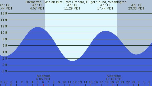 Tidal Heights at Bremerton, Sinclair Inlet, Port Orchard, Puget Sound, Washington