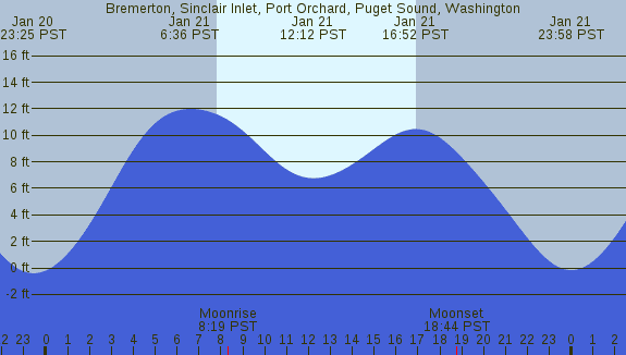 Tidal Heights at Bremerton, Sinclair Inlet, Port Orchard, Puget Sound, Washington