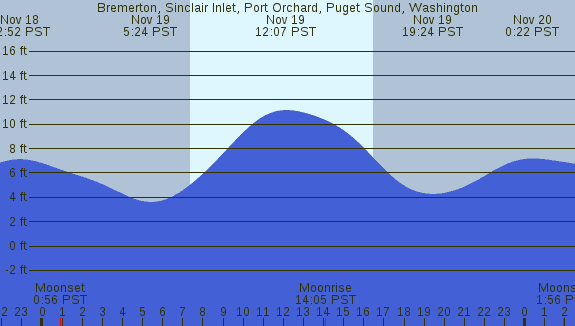 Tidal Heights at Bremerton, Sinclair Inlet, Port Orchard, Puget Sound, Washington