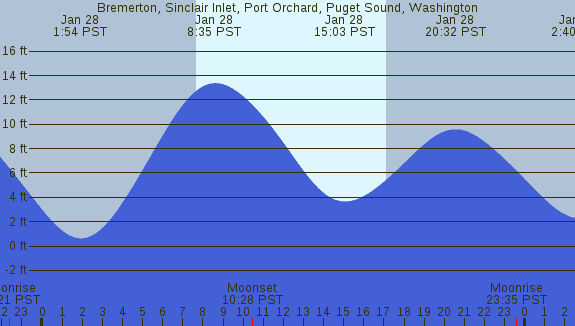 Tidal Heights at Bremerton, Sinclair Inlet, Port Orchard, Puget Sound, Washington