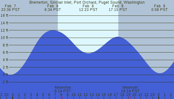 Tidal Heights at Bremerton, Sinclair Inlet, Port Orchard, Puget Sound, Washington
