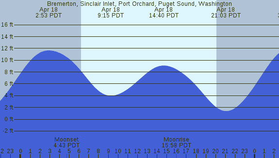 Tidal Heights at Bremerton, Sinclair Inlet, Port Orchard, Puget Sound, Washington