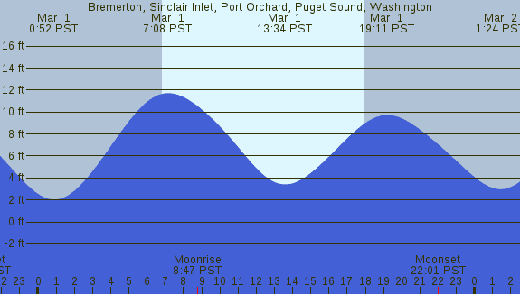 Tidal Heights at Bremerton, Sinclair Inlet, Port Orchard, Puget Sound, Washington