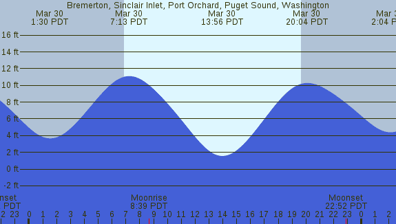 Tidal Heights at Bremerton, Sinclair Inlet, Port Orchard, Puget Sound, Washington