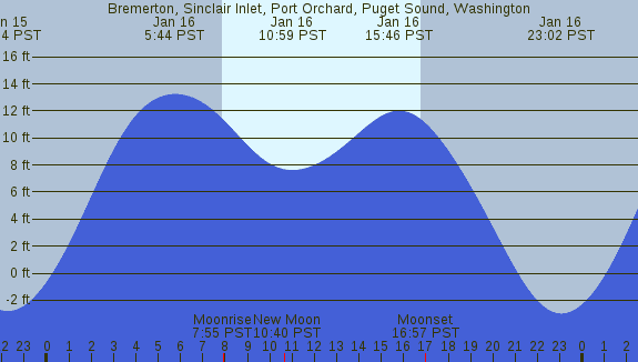 Tidal Heights at Bremerton, Sinclair Inlet, Port Orchard, Puget Sound, Washington