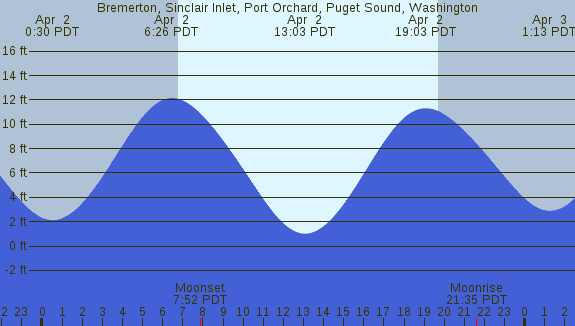 Tidal Heights at Bremerton, Sinclair Inlet, Port Orchard, Puget Sound, Washington