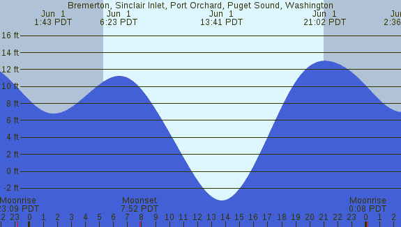Tidal Heights at Bremerton, Sinclair Inlet, Port Orchard, Puget Sound, Washington