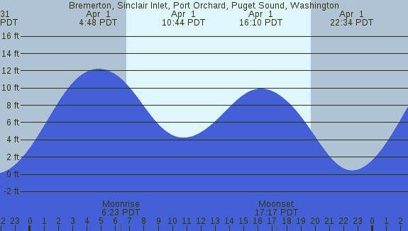 Tidal Heights at Bremerton, Sinclair Inlet, Port Orchard, Puget Sound, Washington
