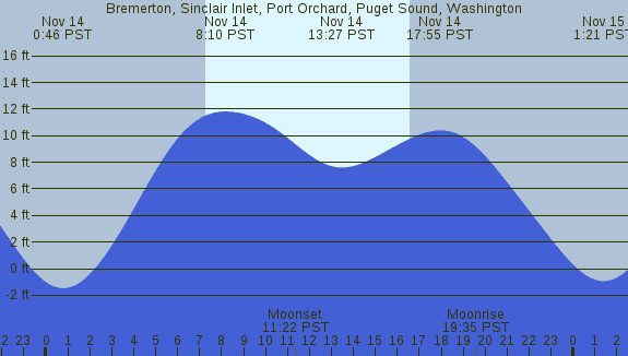 Tidal Heights at Bremerton, Sinclair Inlet, Port Orchard, Puget Sound, Washington