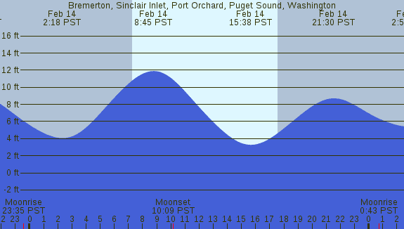 Tidal Heights at Bremerton, Sinclair Inlet, Port Orchard, Puget Sound, Washington