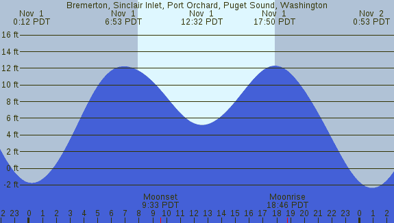 Tidal Heights at Bremerton, Sinclair Inlet, Port Orchard, Puget Sound, Washington
