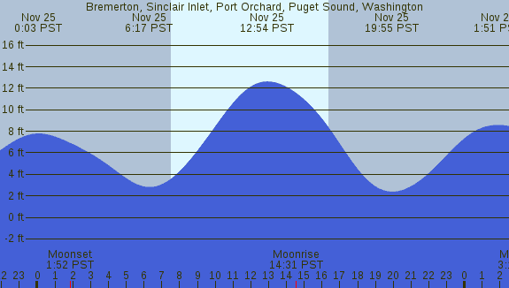 Tidal Heights at Bremerton, Sinclair Inlet, Port Orchard, Puget Sound, Washington