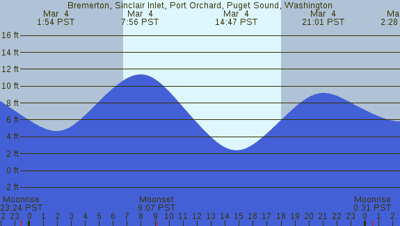 Tidal Heights at Bremerton, Sinclair Inlet, Port Orchard, Puget Sound, Washington