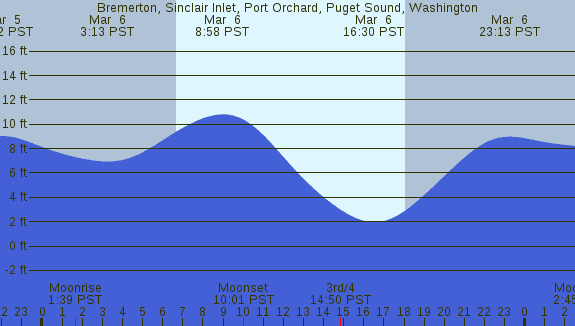 Tidal Heights at Bremerton, Sinclair Inlet, Port Orchard, Puget Sound, Washington