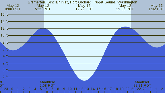 Tidal Heights at Bremerton, Sinclair Inlet, Port Orchard, Puget Sound, Washington