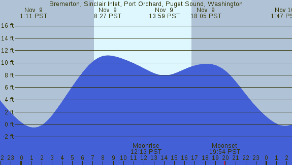 Tidal Heights at Bremerton, Sinclair Inlet, Port Orchard, Puget Sound, Washington