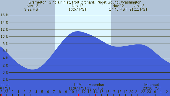 Tidal Heights at Bremerton, Sinclair Inlet, Port Orchard, Puget Sound, Washington