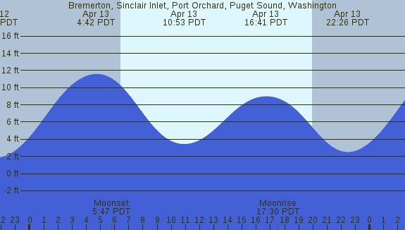 Tidal Heights at Bremerton, Sinclair Inlet, Port Orchard, Puget Sound, Washington