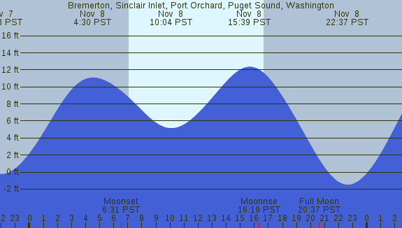 Tidal Heights at Bremerton, Sinclair Inlet, Port Orchard, Puget Sound, Washington