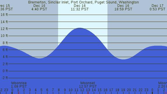 Tidal Heights at Bremerton, Sinclair Inlet, Port Orchard, Puget Sound, Washington