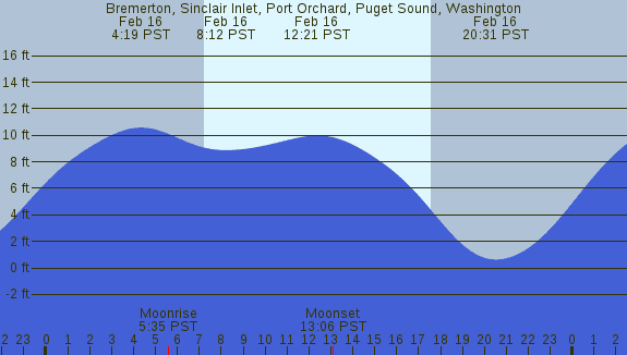 Tidal Heights at Bremerton, Sinclair Inlet, Port Orchard, Puget Sound, Washington