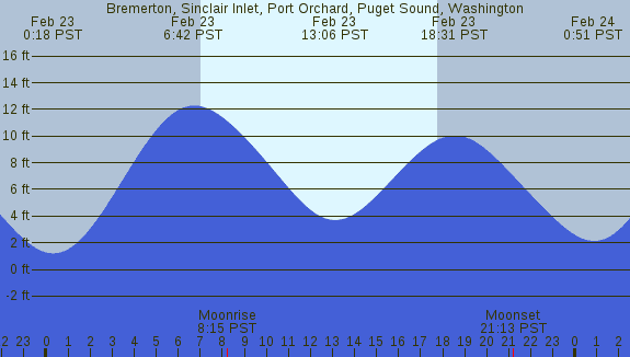 Tidal Heights at Bremerton, Sinclair Inlet, Port Orchard, Puget Sound, Washington