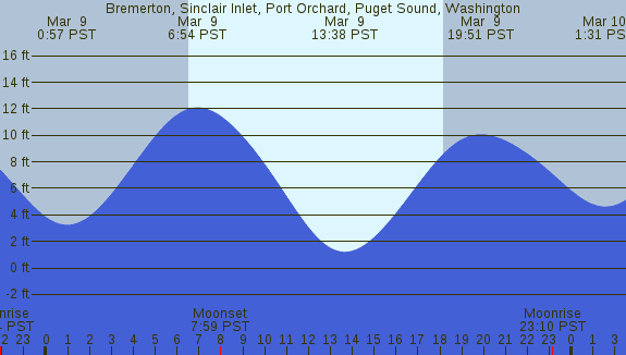 Tidal Heights at Bremerton, Sinclair Inlet, Port Orchard, Puget Sound, Washington