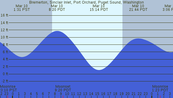 Tidal Heights at Bremerton, Sinclair Inlet, Port Orchard, Puget Sound, Washington