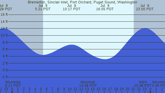 Tidal Heights at Bremerton, Sinclair Inlet, Port Orchard, Puget Sound, Washington