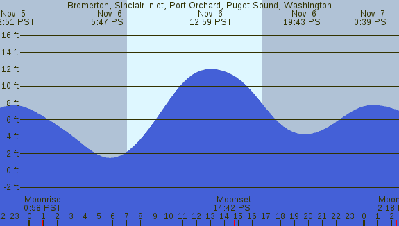 Tidal Heights at Bremerton, Sinclair Inlet, Port Orchard, Puget Sound, Washington