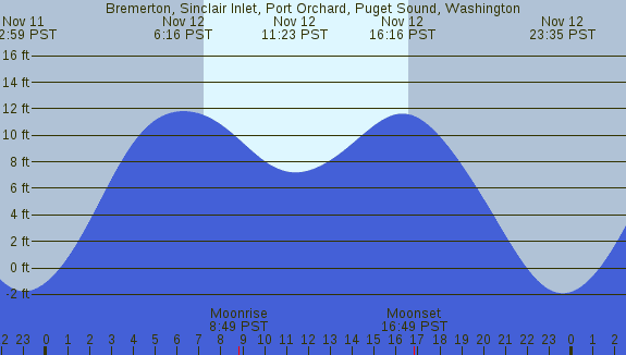 Tidal Heights at Bremerton, Sinclair Inlet, Port Orchard, Puget Sound, Washington