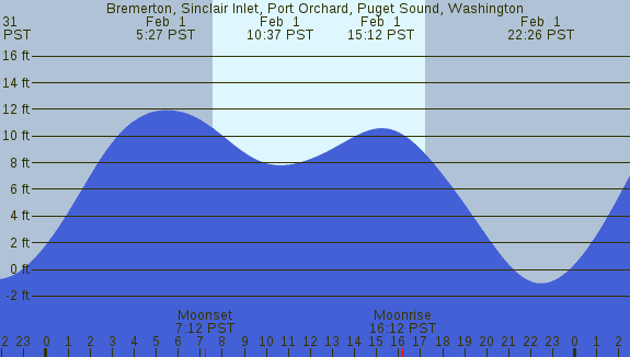 Tidal Heights at Bremerton, Sinclair Inlet, Port Orchard, Puget Sound, Washington