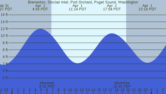 Tidal Heights at Bremerton, Sinclair Inlet, Port Orchard, Puget Sound, Washington