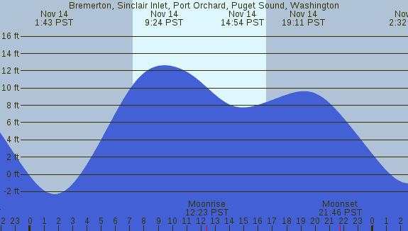 Tidal Heights at Bremerton, Sinclair Inlet, Port Orchard, Puget Sound, Washington