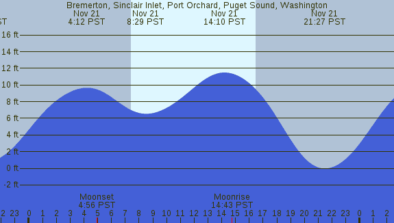 Tidal Heights at Bremerton, Sinclair Inlet, Port Orchard, Puget Sound, Washington