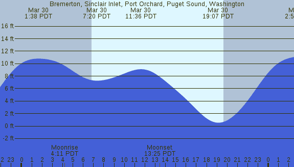 Tidal Heights at Bremerton, Sinclair Inlet, Port Orchard, Puget Sound, Washington