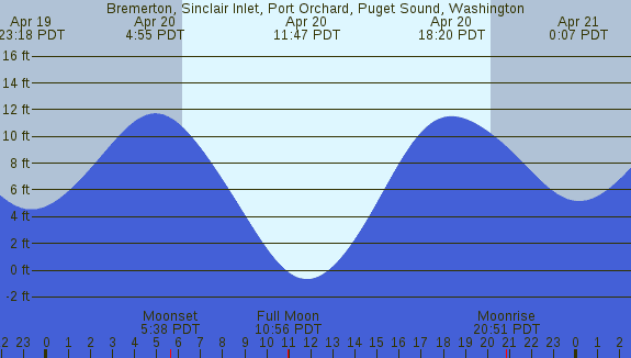 Tidal Heights at Bremerton, Sinclair Inlet, Port Orchard, Puget Sound, Washington