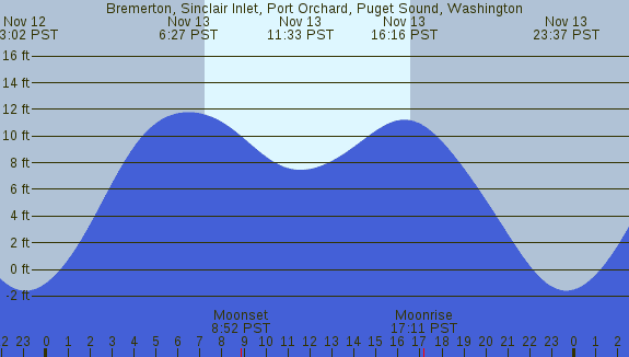 Tidal Heights at Bremerton, Sinclair Inlet, Port Orchard, Puget Sound, Washington