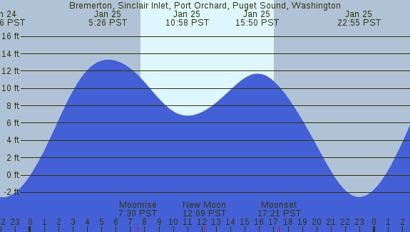 Tidal Heights at Bremerton, Sinclair Inlet, Port Orchard, Puget Sound, Washington