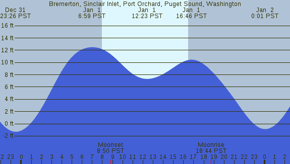 Tidal Heights at Bremerton, Sinclair Inlet, Port Orchard, Puget Sound, Washington
