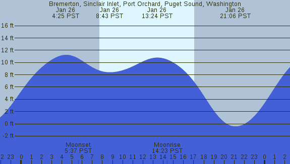 Tidal Heights at Bremerton, Sinclair Inlet, Port Orchard, Puget Sound, Washington