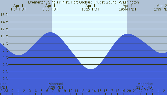 Tidal Heights at Bremerton, Sinclair Inlet, Port Orchard, Puget Sound, Washington