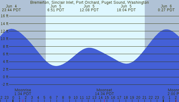 Tidal Heights at Bremerton, Sinclair Inlet, Port Orchard, Puget Sound, Washington